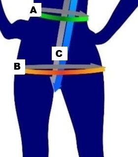 | Talles | Contorno de Cintura (A) | Contorno de Cadera (B) |