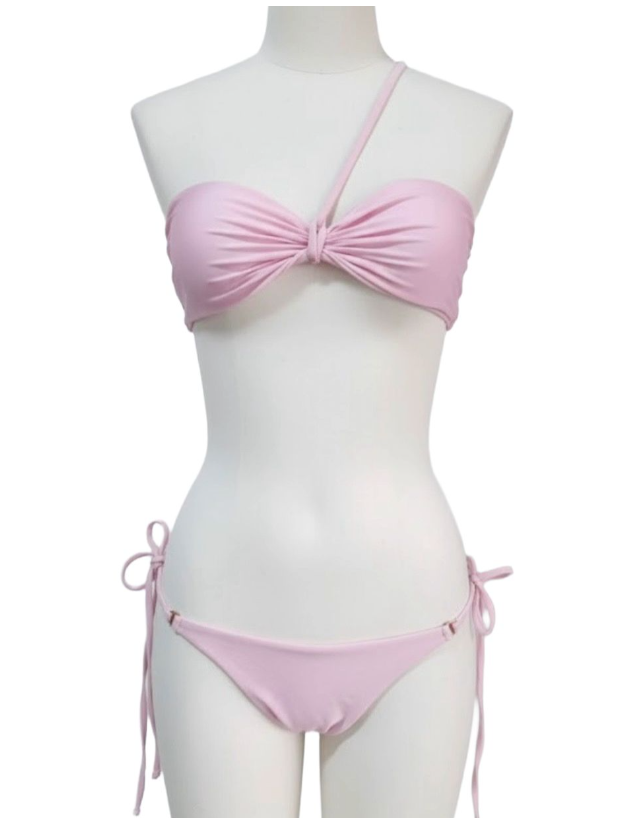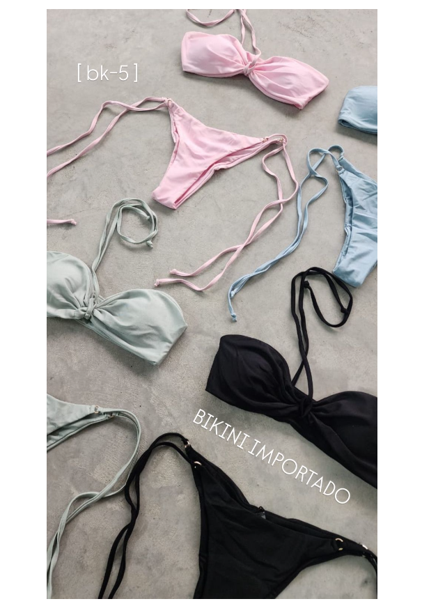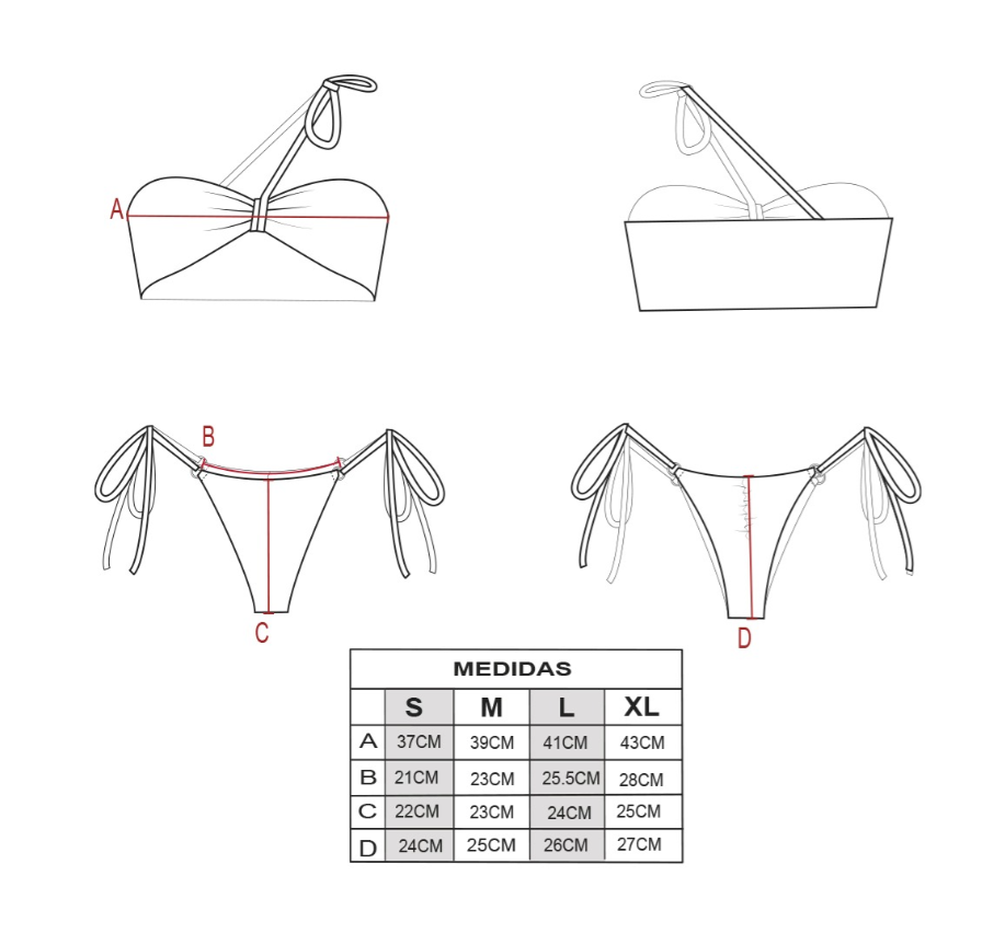 Bikini con detalle del tirante cruzado que se ata al rededor del cuello y la parte inferior con tiras ajustables