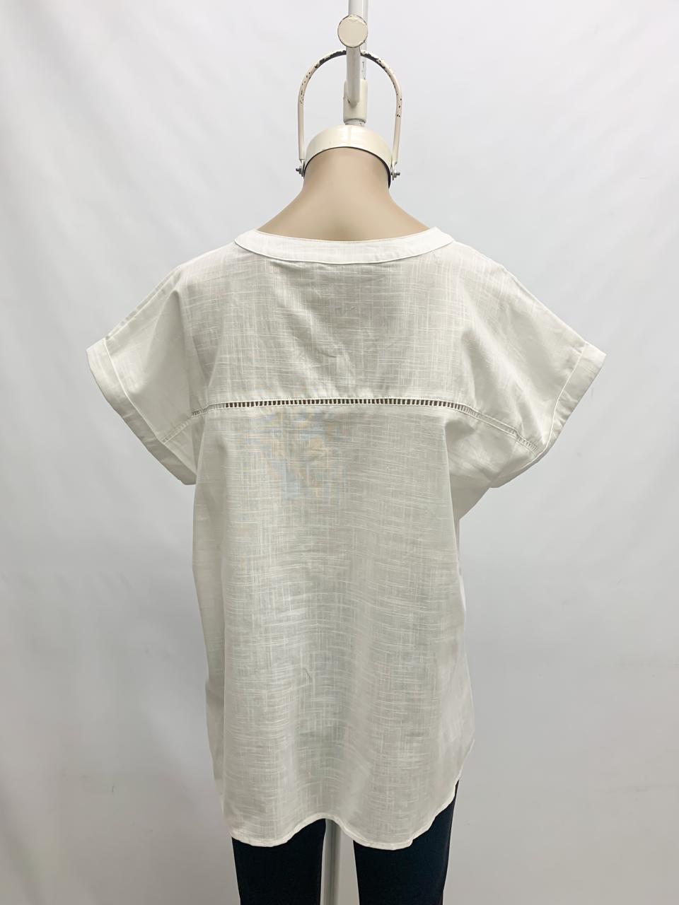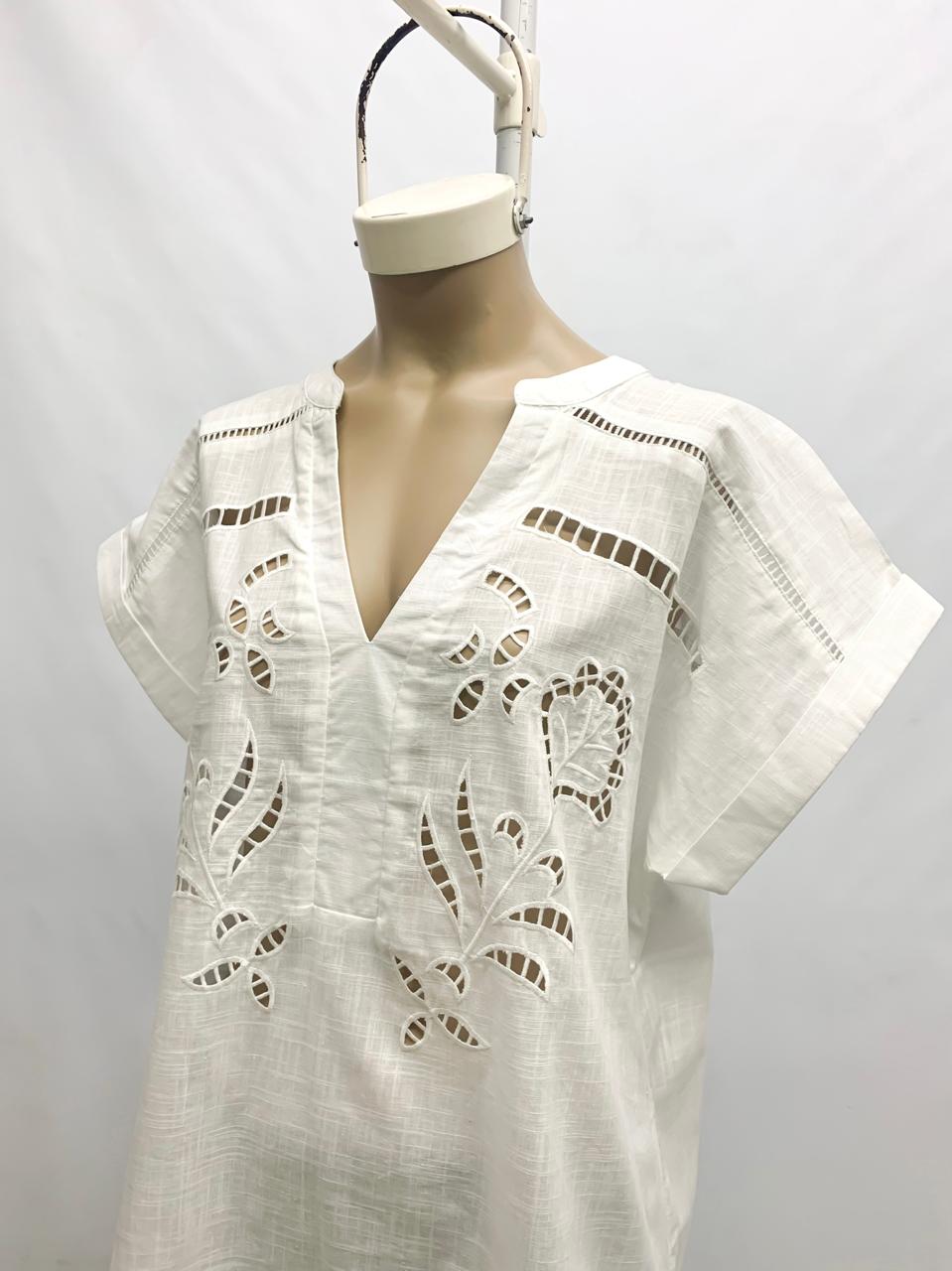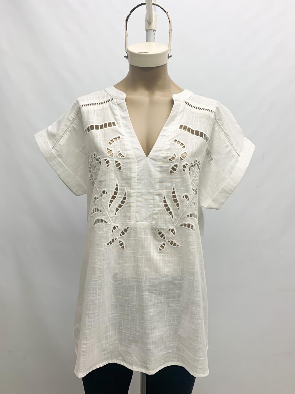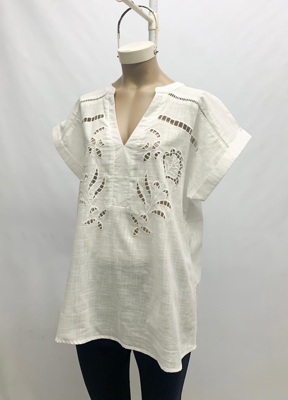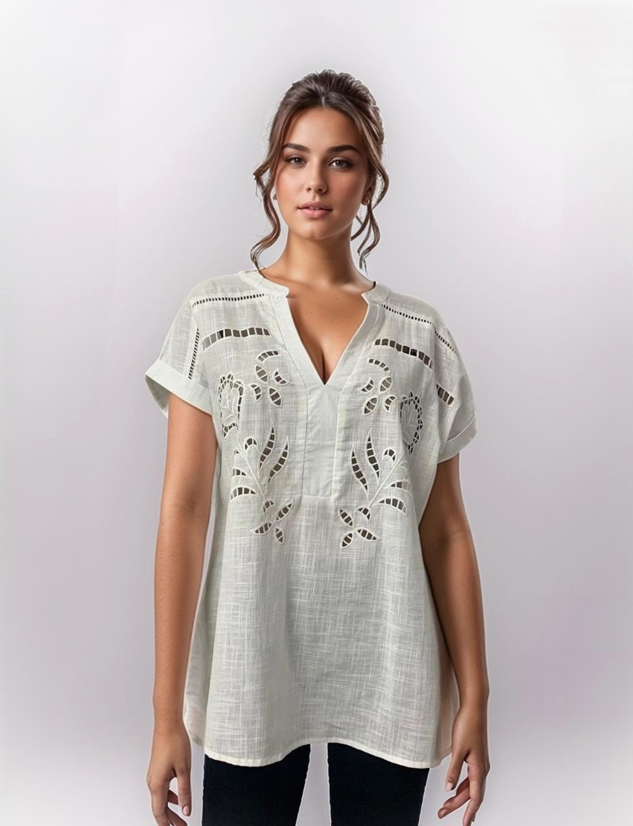 Blusa de lino bordado y calado con puntilla