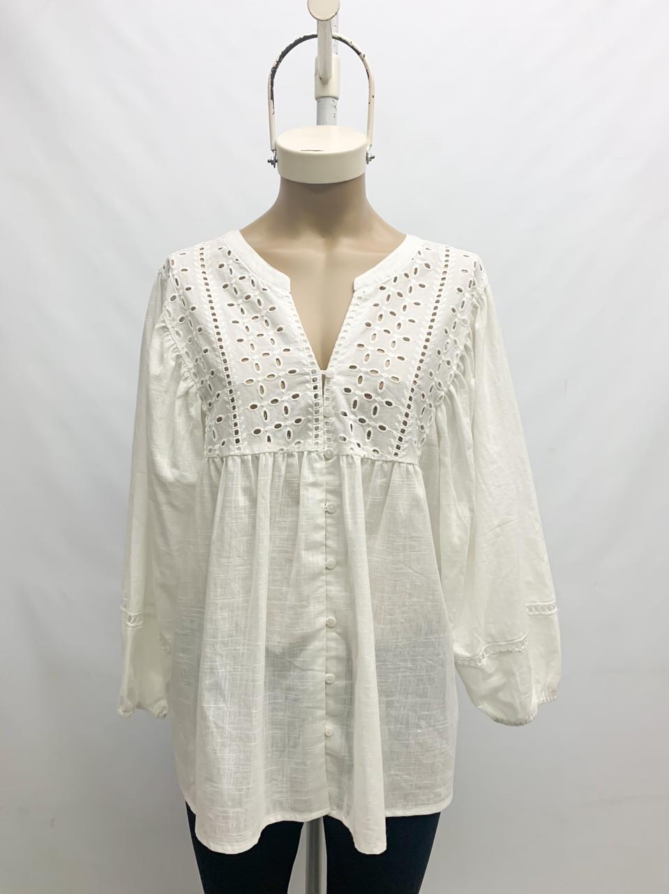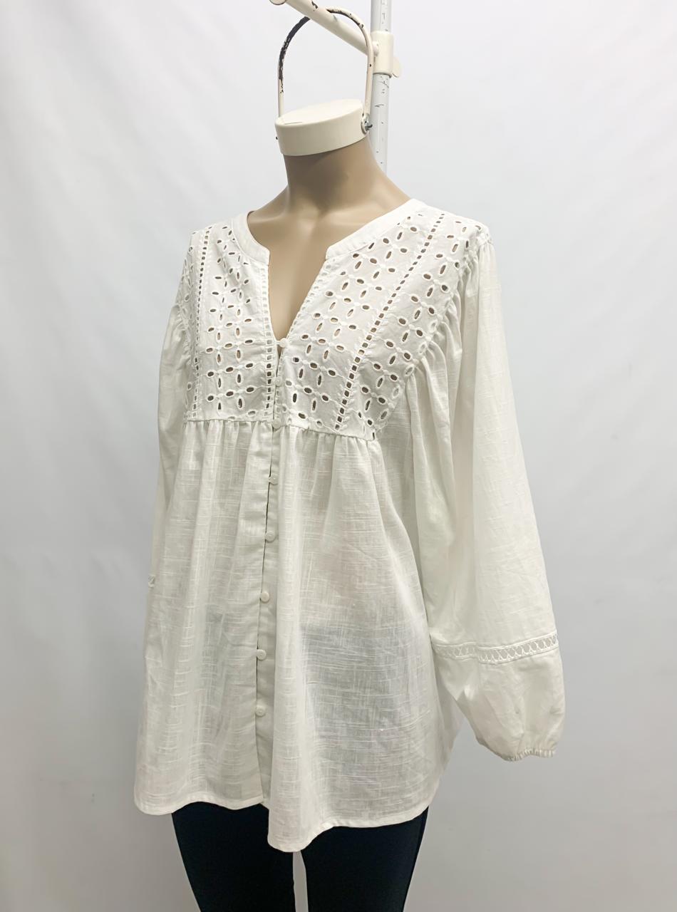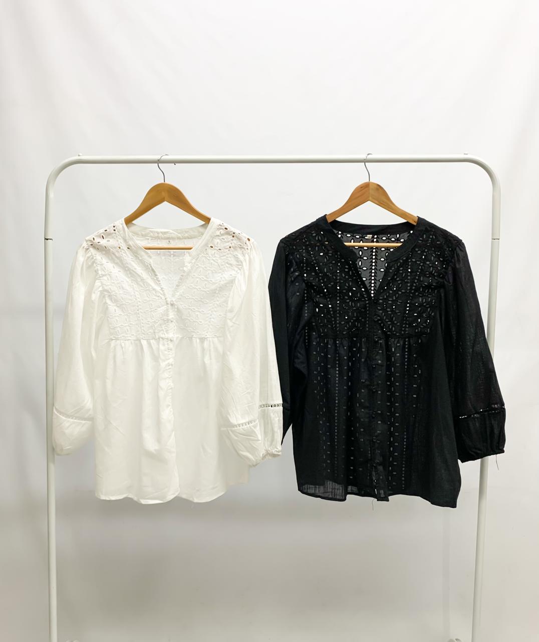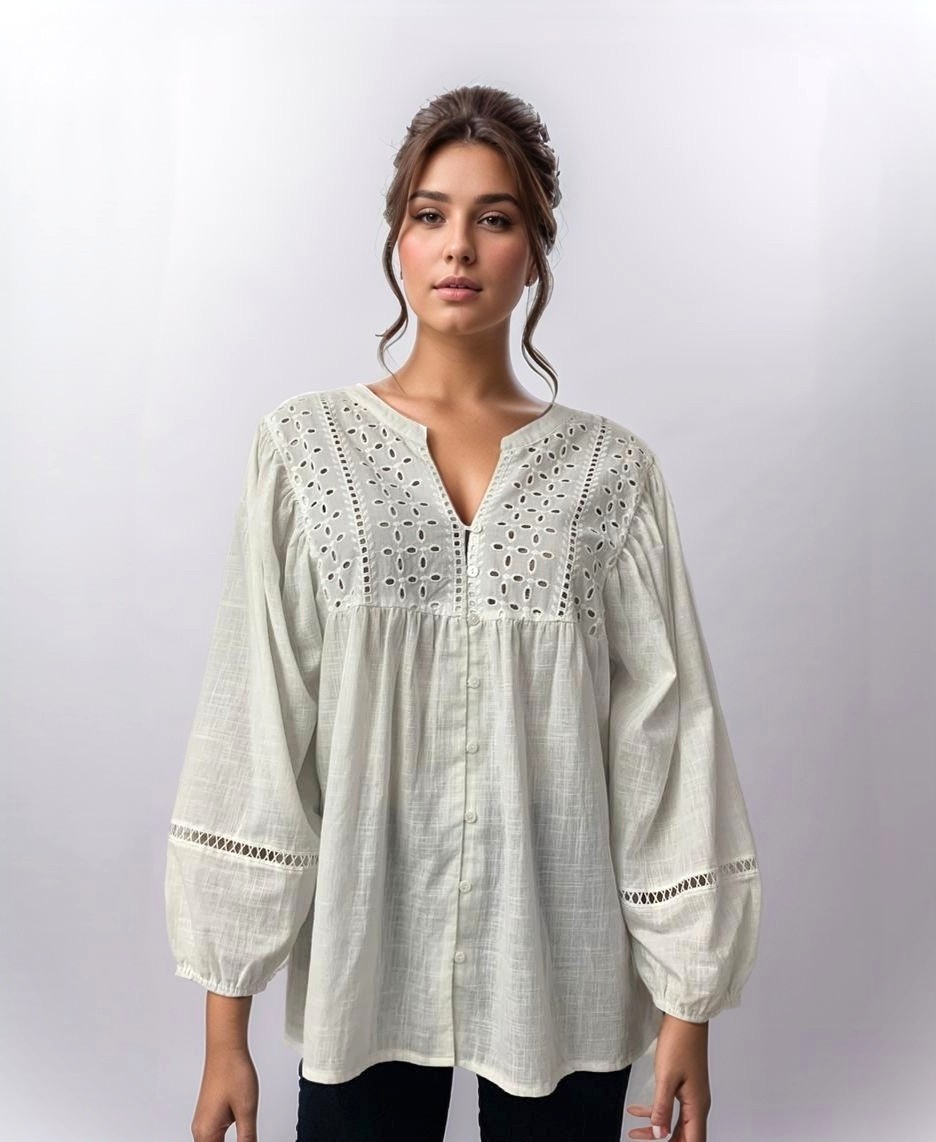 Blusa algodón combi brodery y putilla