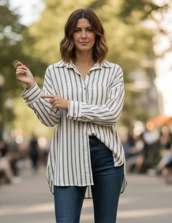 Camisa rayada lino texturado
