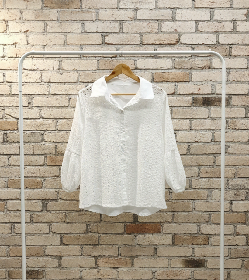 Camisa Brodery combi espalda liso manga elástica