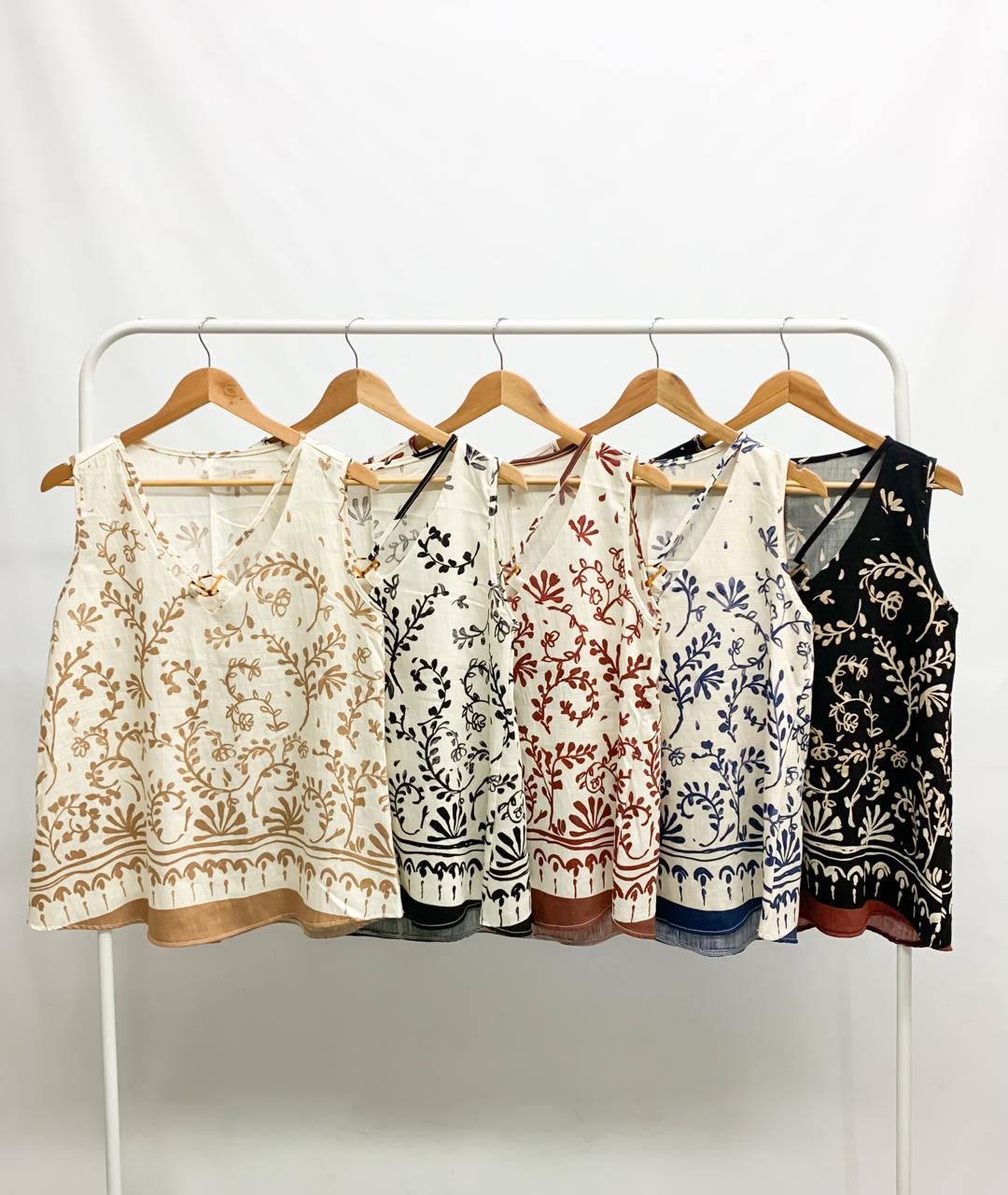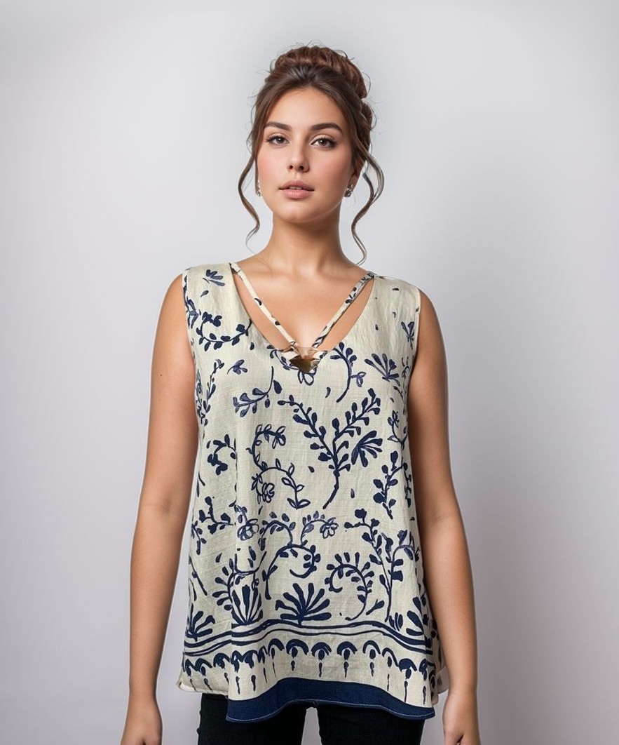 Musculosa sedita estampada con hebilla