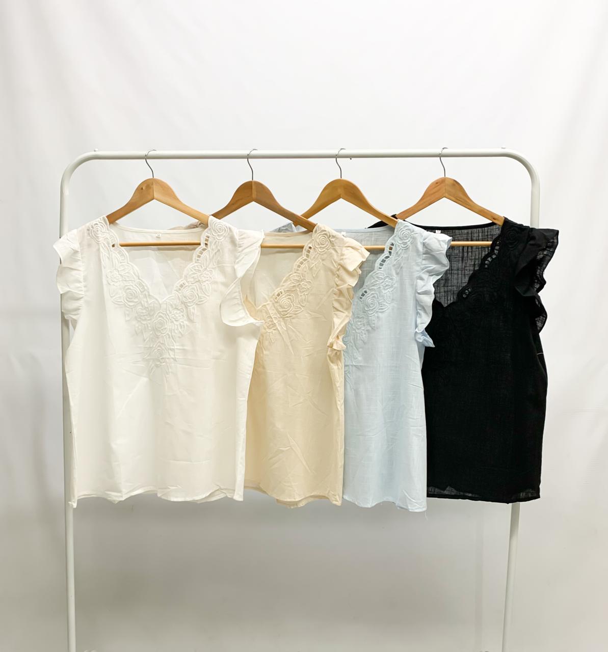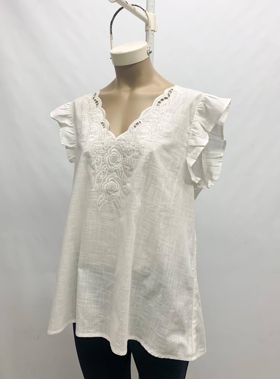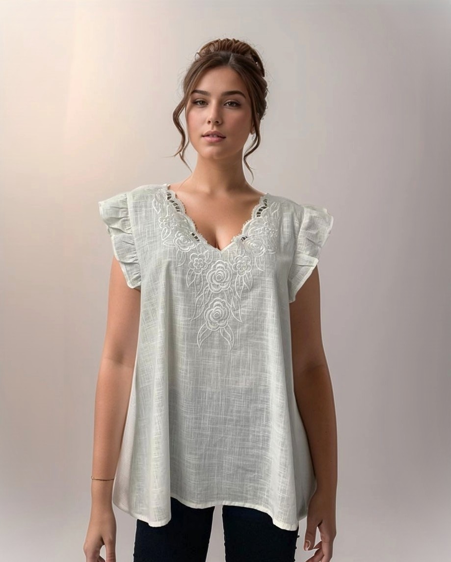 Musculosa de lino bordado y calado