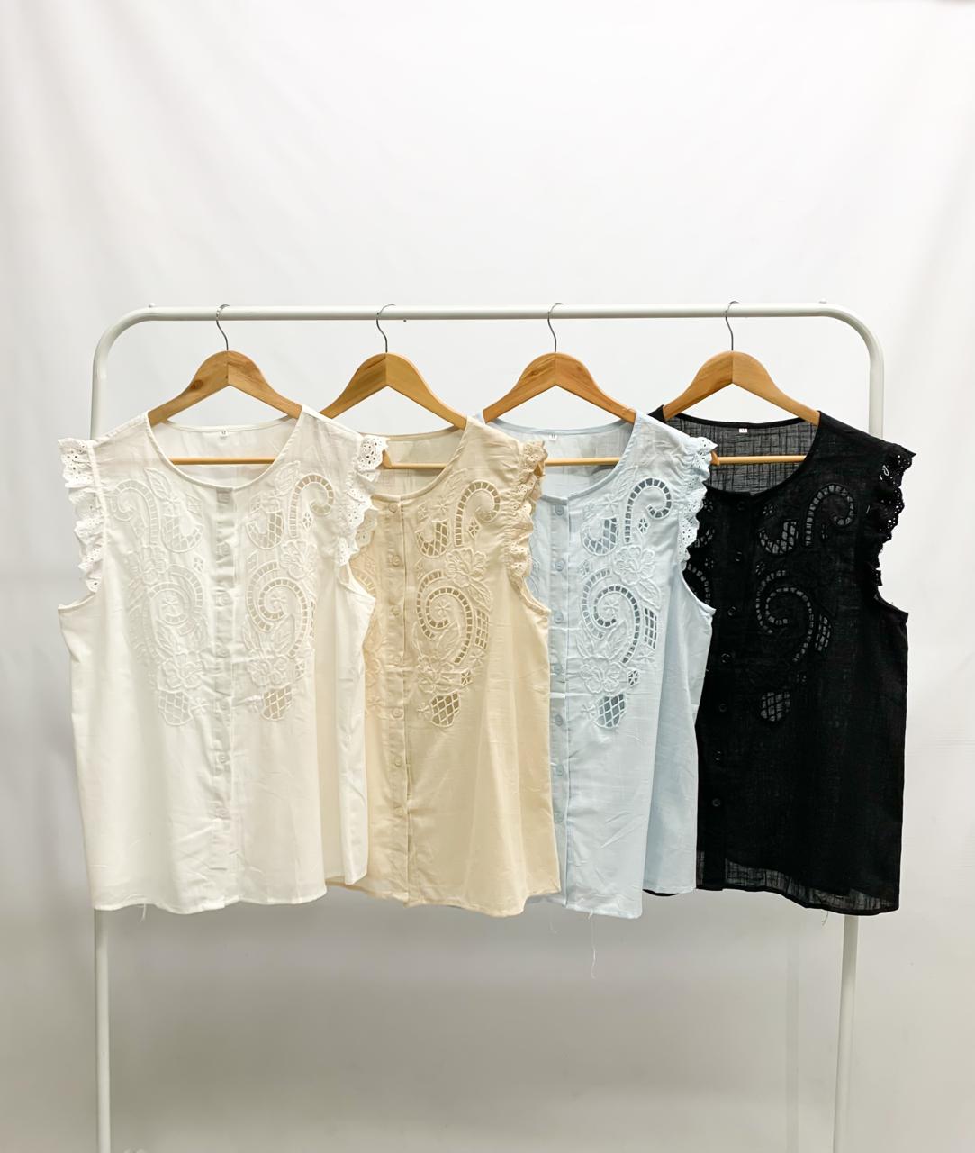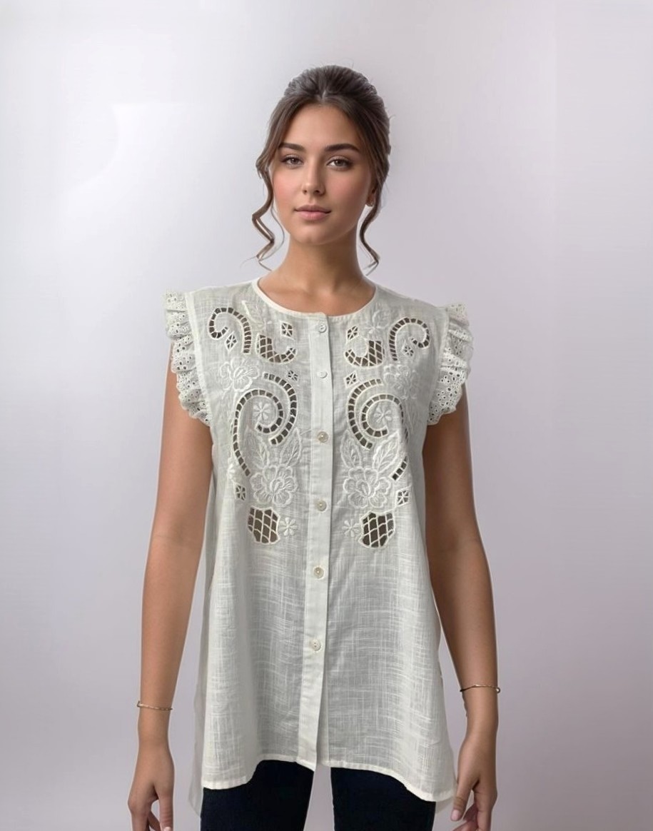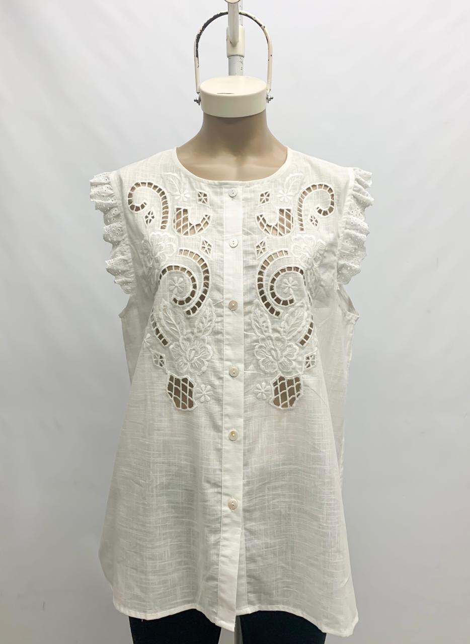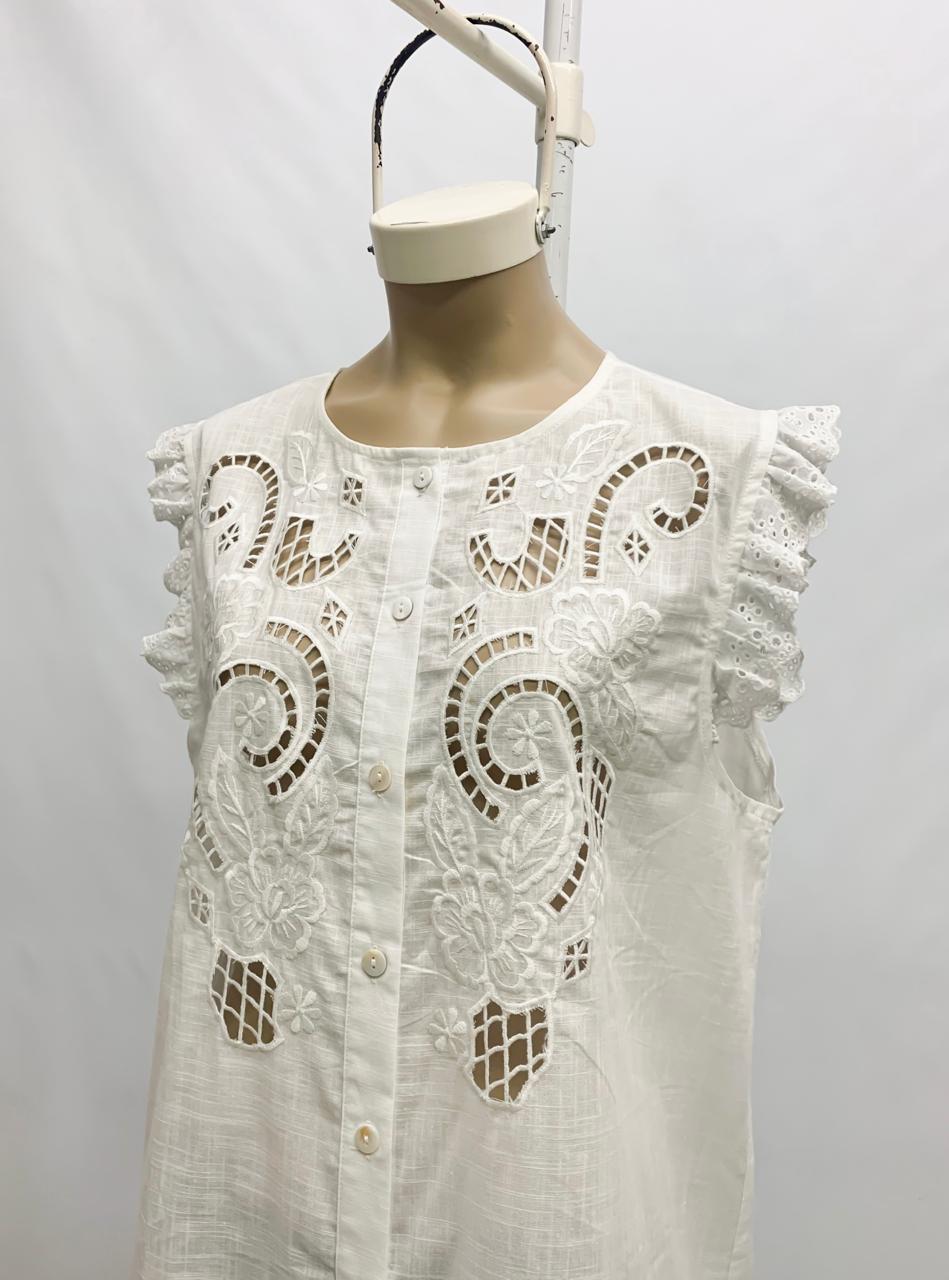 Musculosa de lino algodón bordado calado