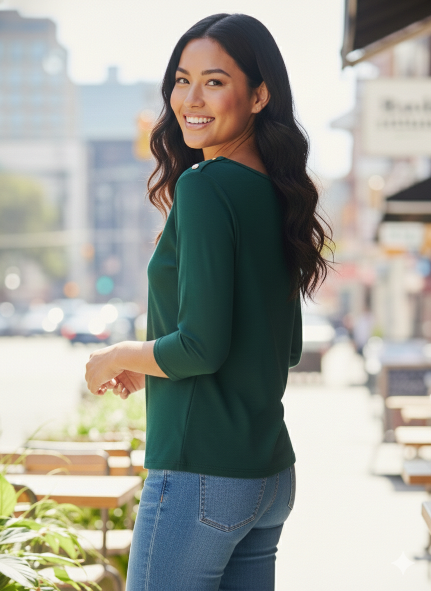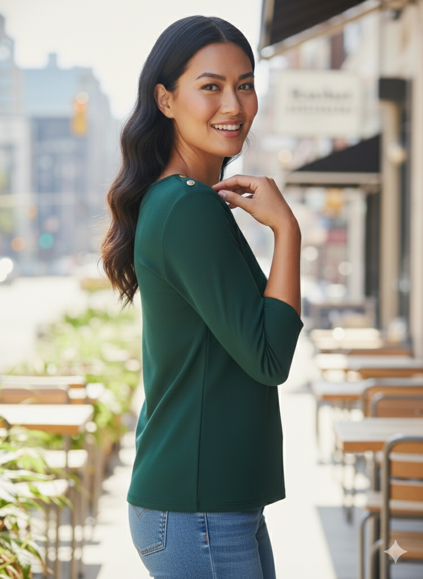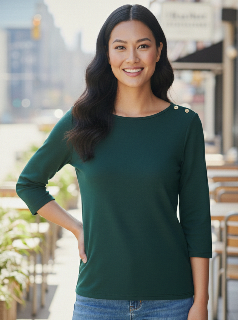 Remera modal liso y broche en el hombro