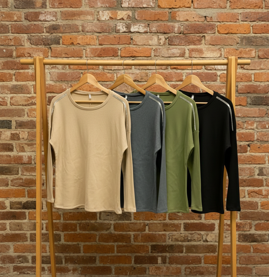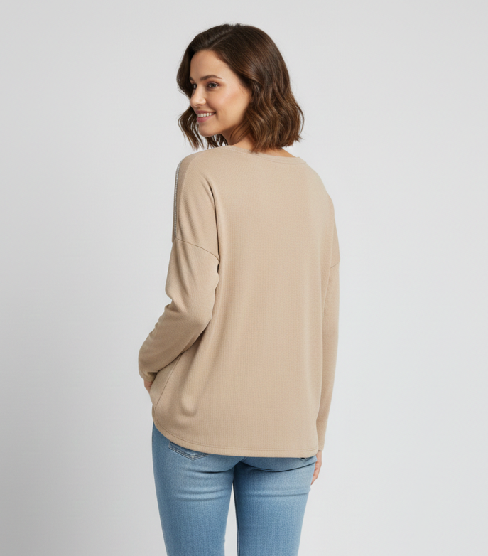 Remera lanilla rib con tira brillo hombro