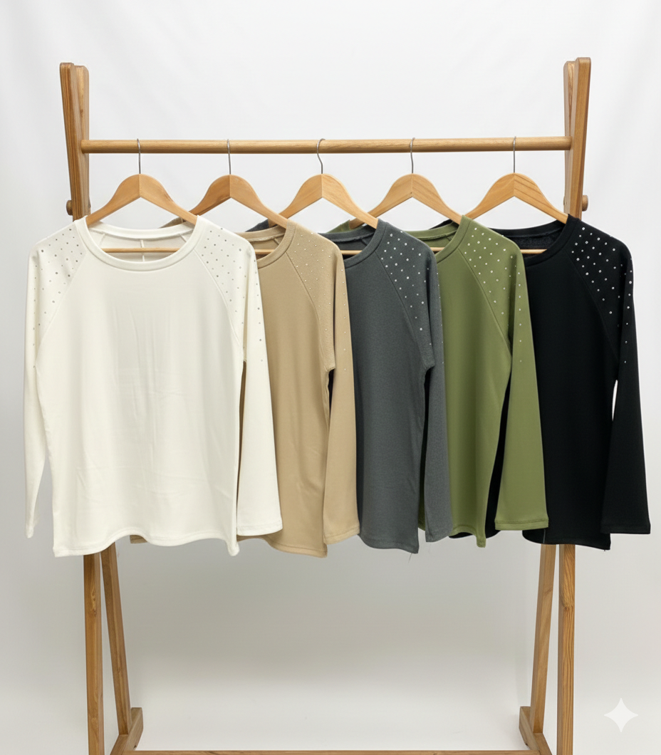 Remera lanilla rib con tacha hombro