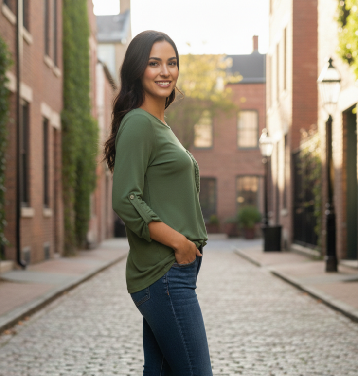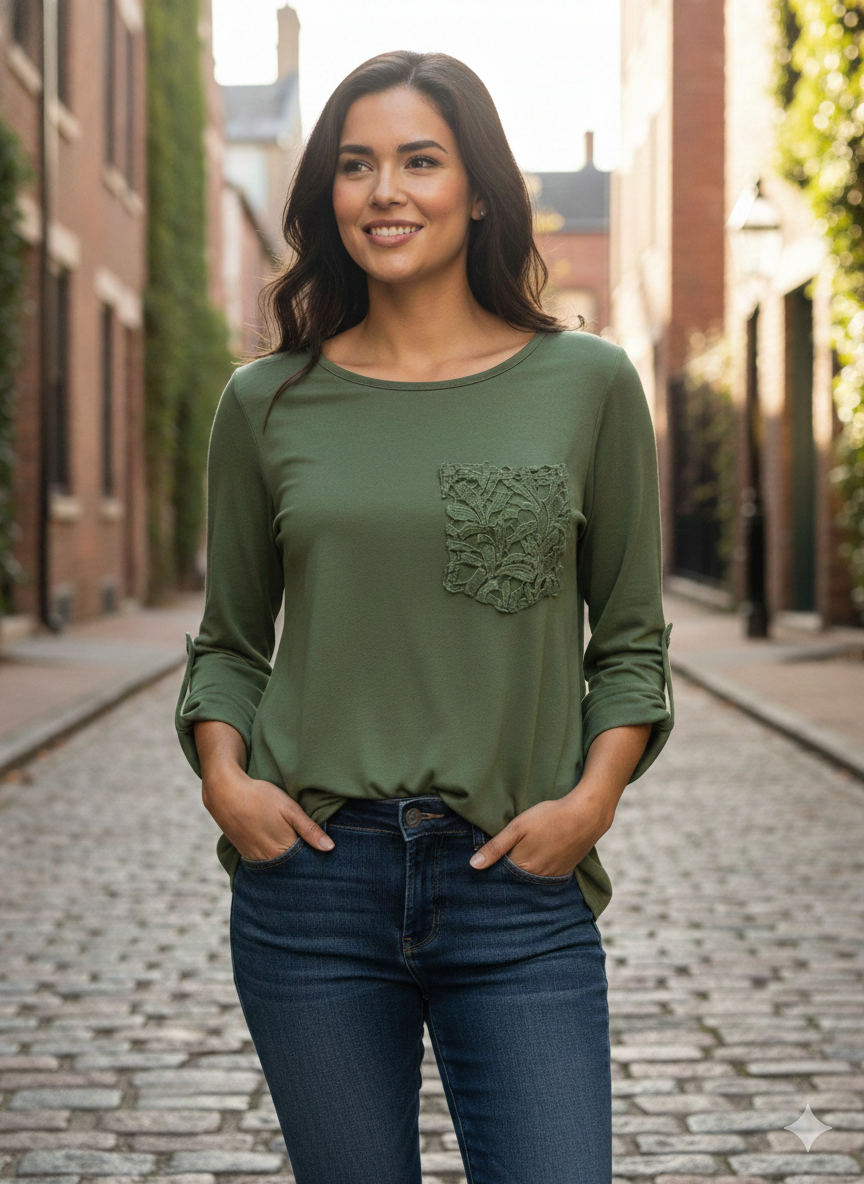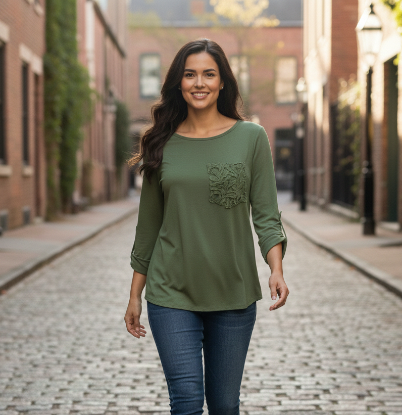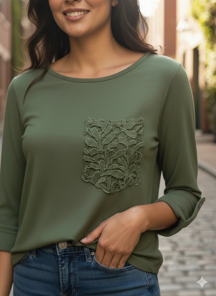 Remera modal combi bolsillo Brodery