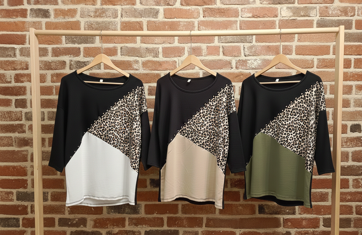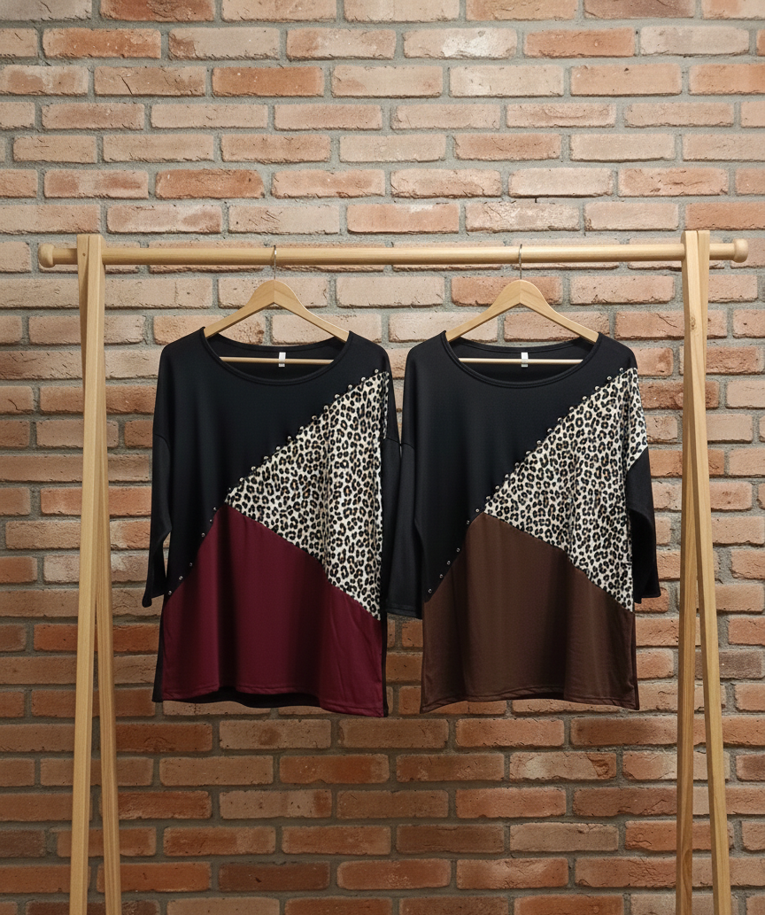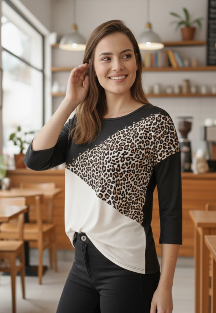 Remera modal combi animal y tachas